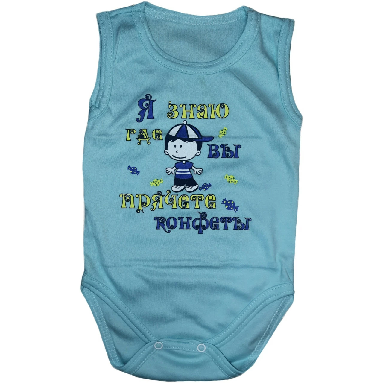 Боди-майка для мальчика с принтом "Я знаю где вы прячете конфеты интерлок"