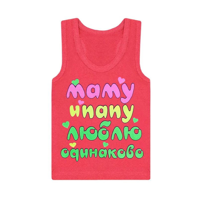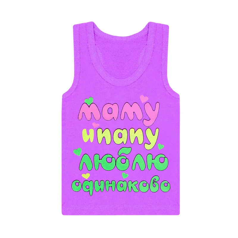 Детская цветная майка-борцовка для девочки с принтом Люблю одинаково кулир
