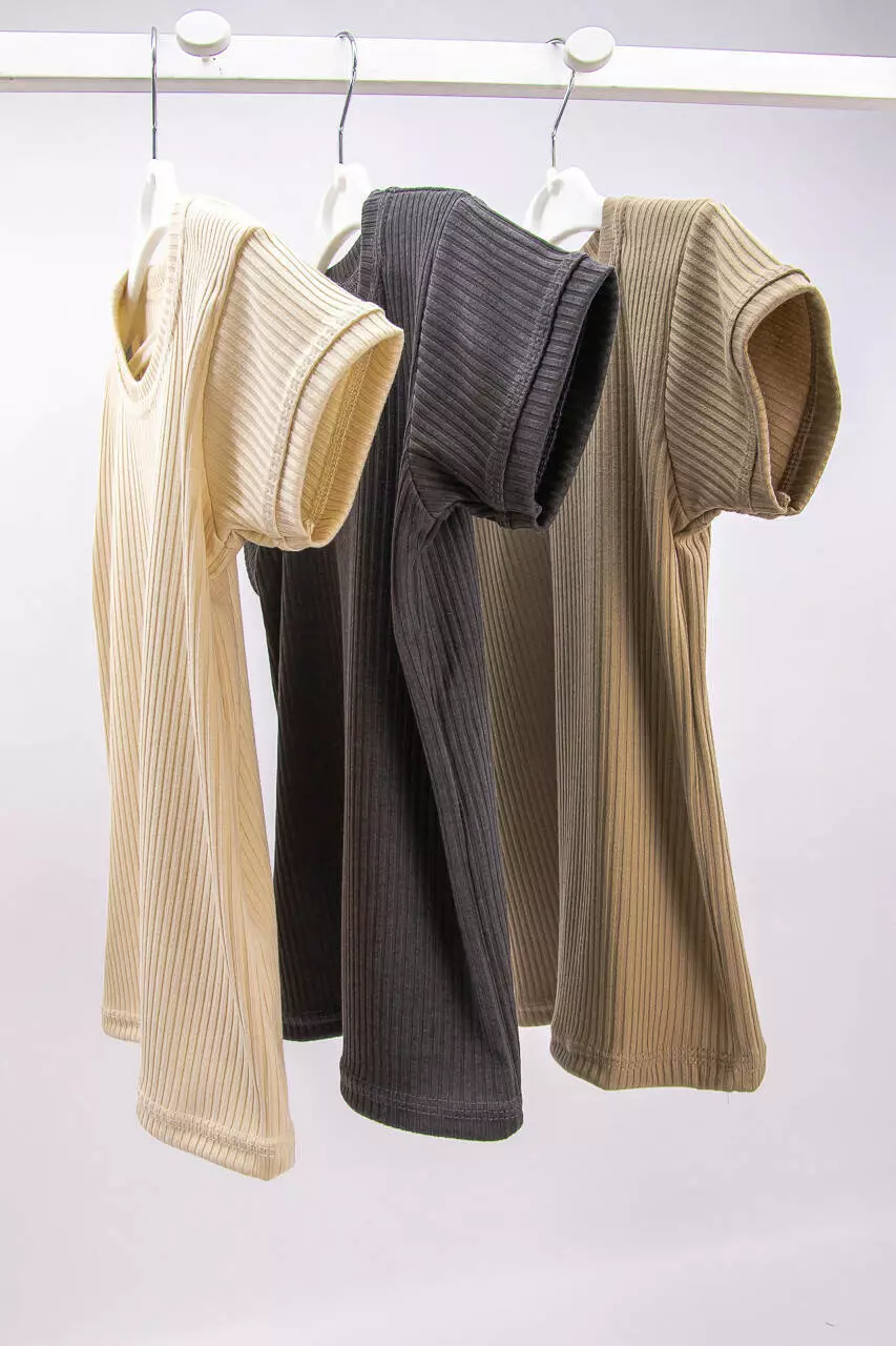 Ткань – рубчик. Состав: 90% хлопок, 10% эластан. Это плотный трикотажный материал, созданный с помощью специального переплетения нитей. Он имеет уникальную структуру, где полоски ткани вытягиваются вдоль поверхности, придавая полотну текстурный вид.
