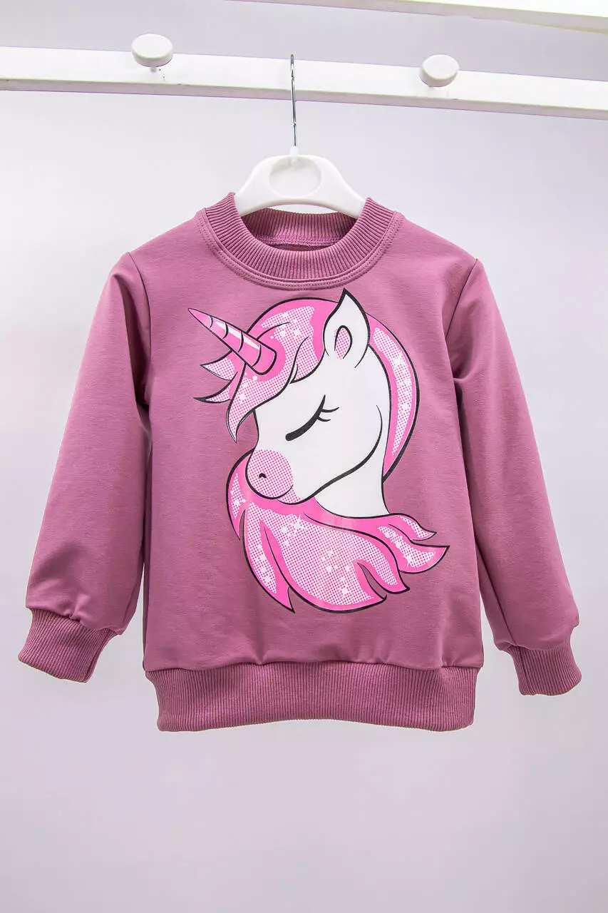 Джемпер детский для девочки с принтом Единорожки двунить