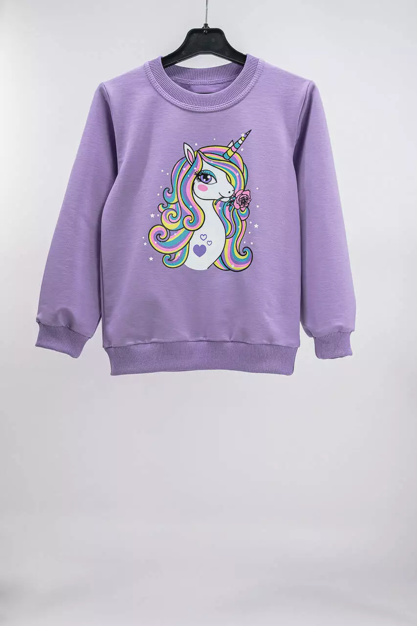 Джемпер имеет в рукавах и внизу трикотажный манжет. Нанесен яркий принт.