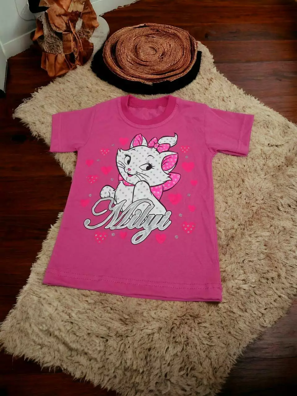 Футболка детская для девочки с принтом кошки кулир