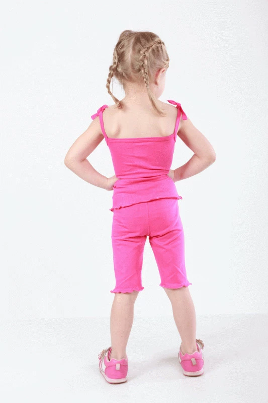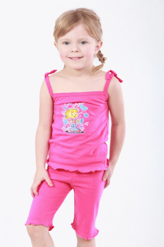 Легкий комплект для девочек, тресы и майка с наклейкой.