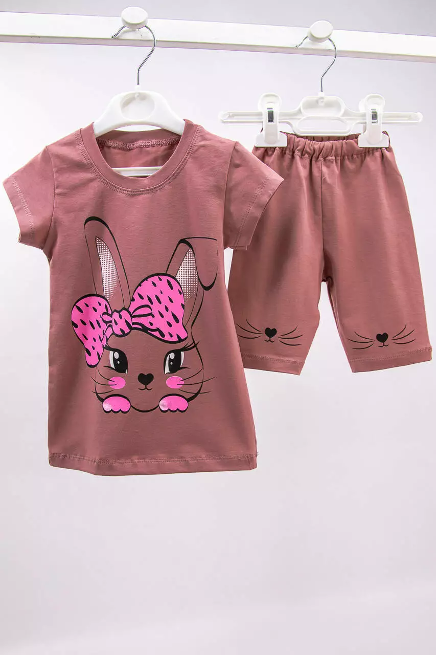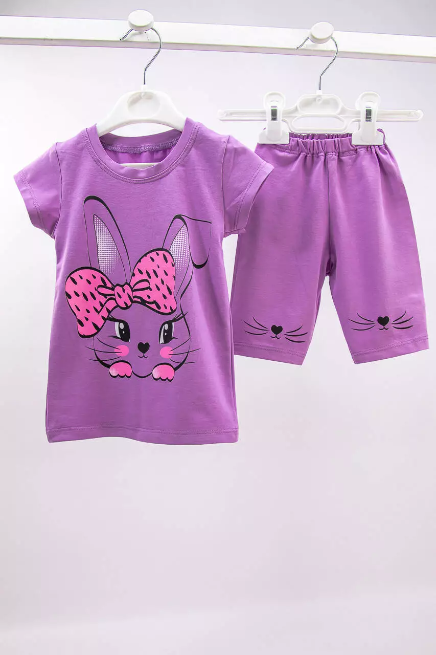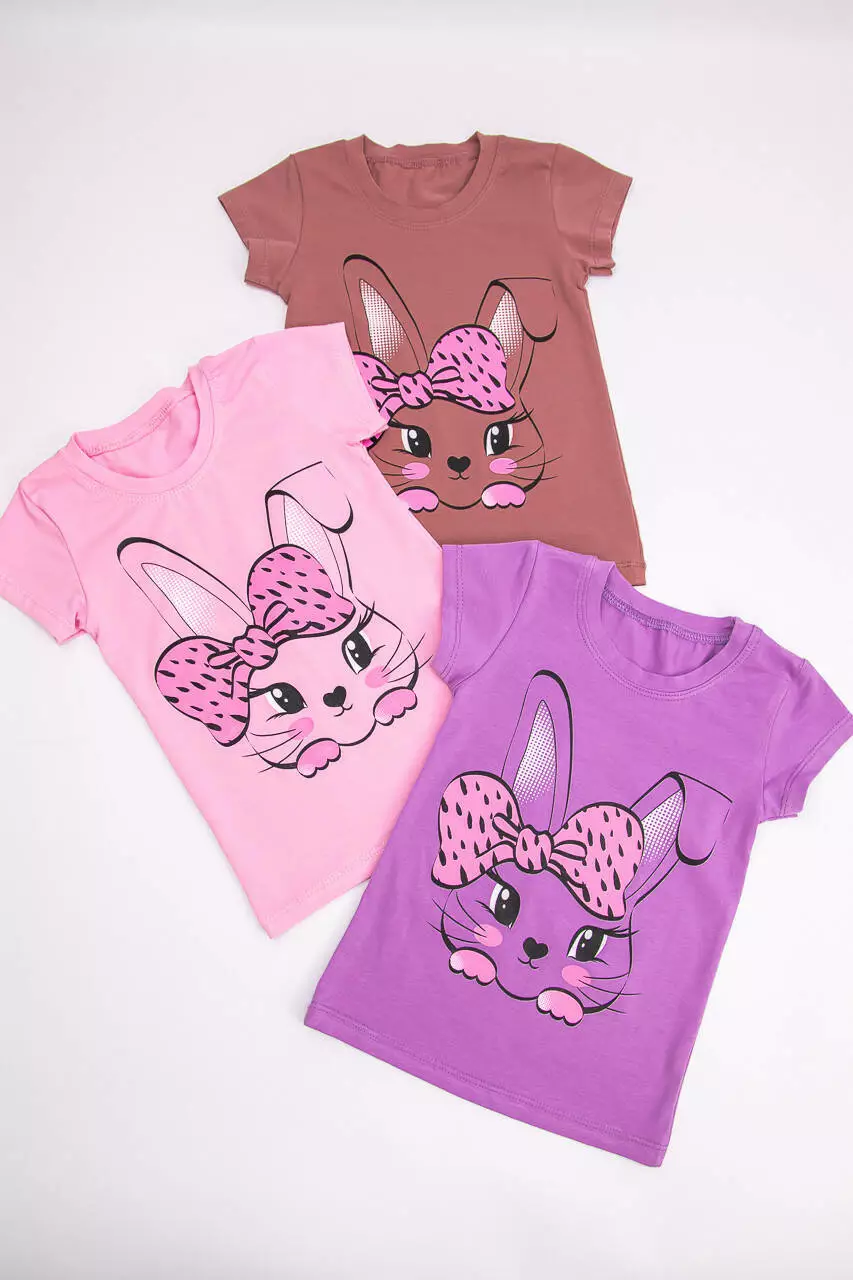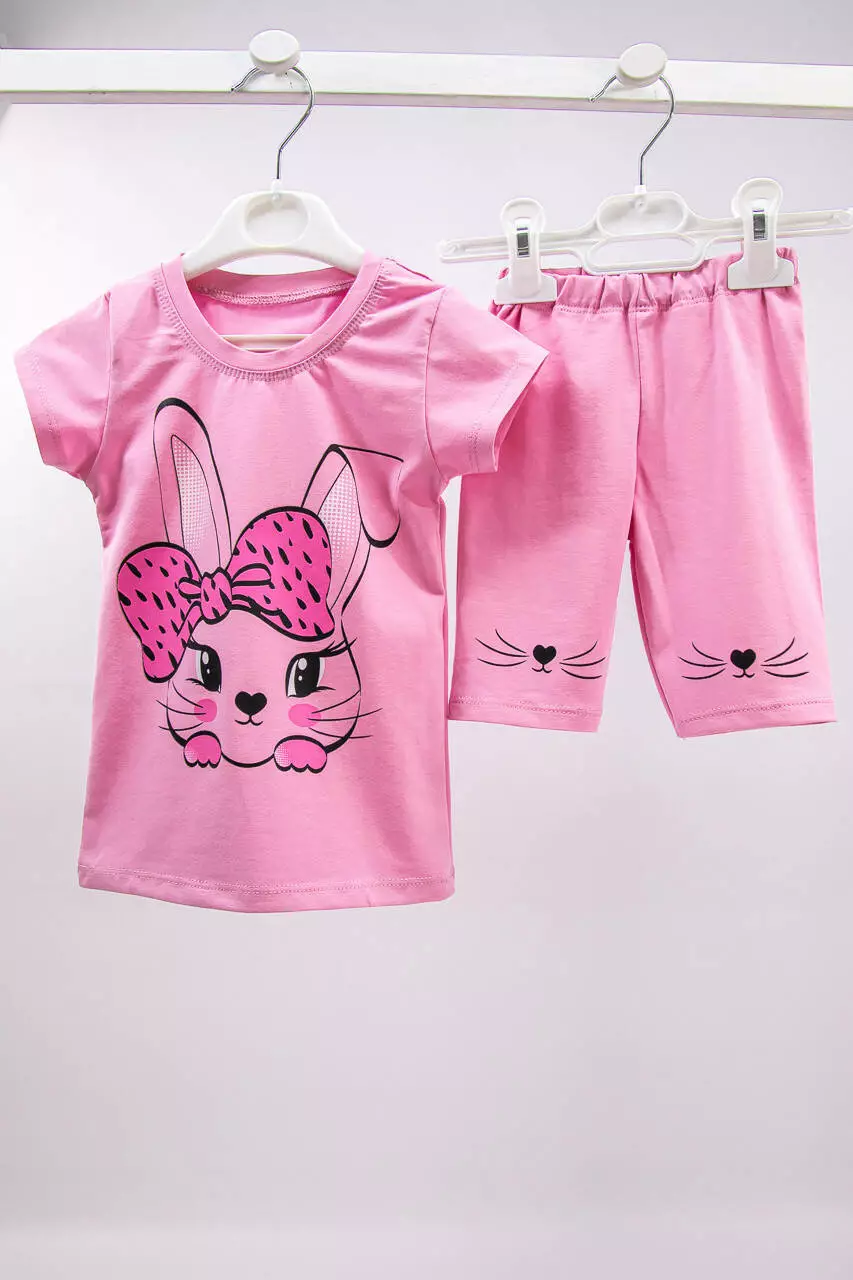 Летний комплект для девочки футболка+тресы Зайка стрейч-кулир