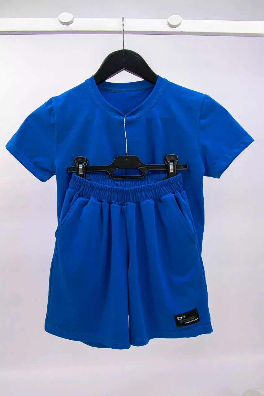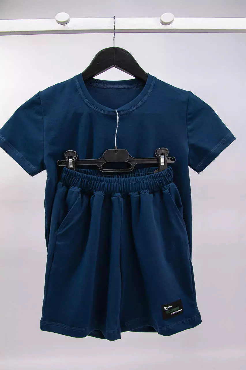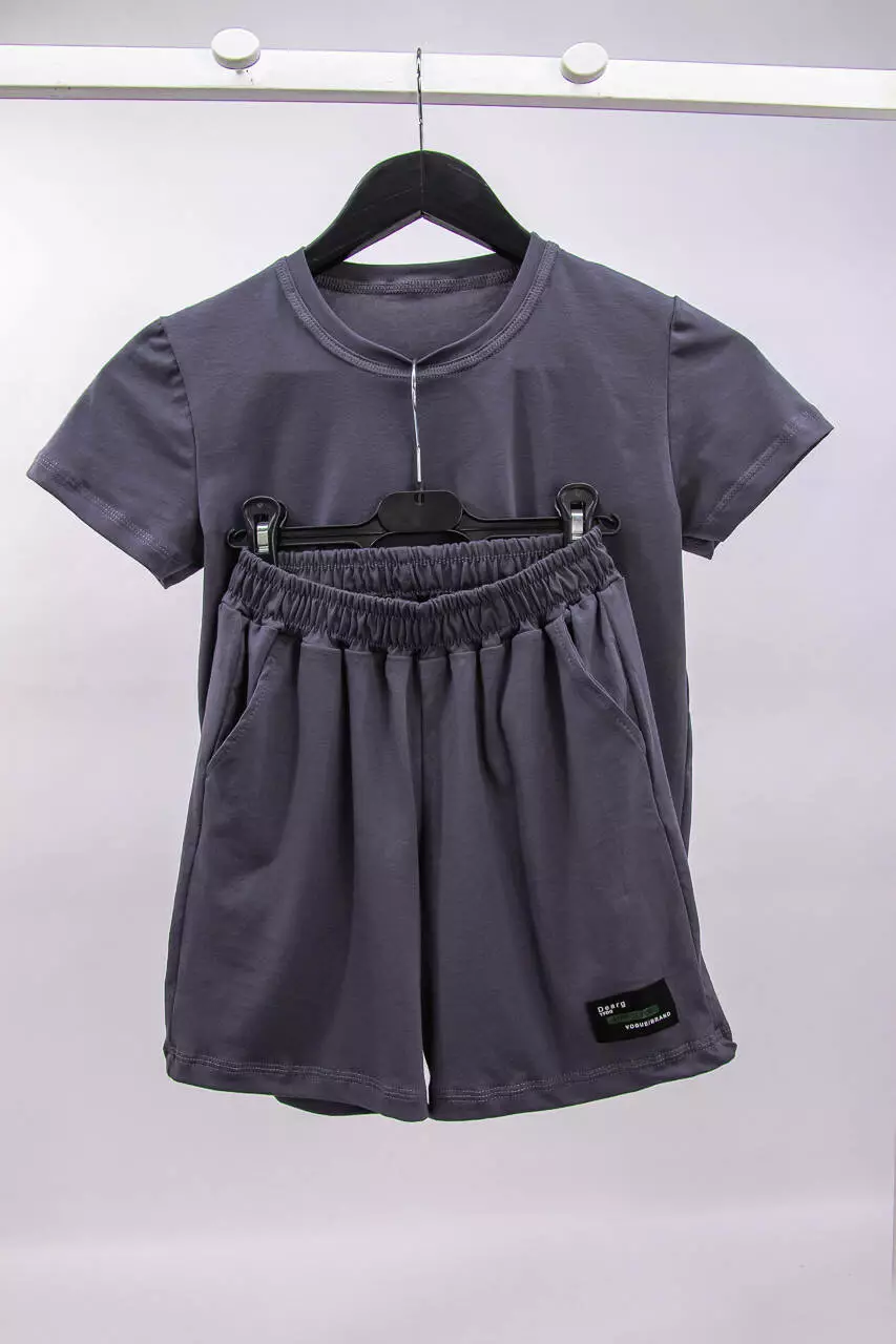 Летний подростковый комплект для мальчика футболка+шорты с нашивкой стрейч-кулир