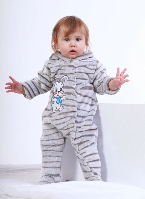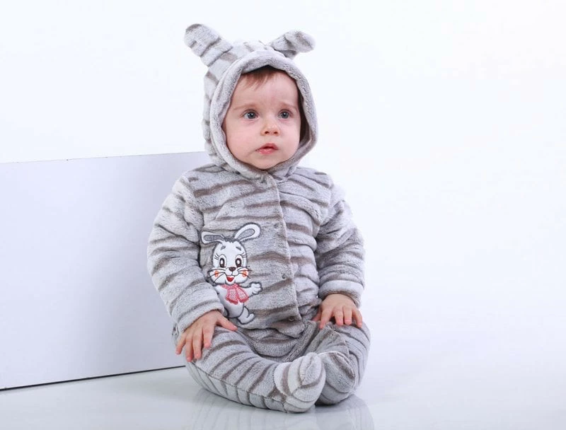 Молочный тёплый комбинезон для девочки с капюшоном