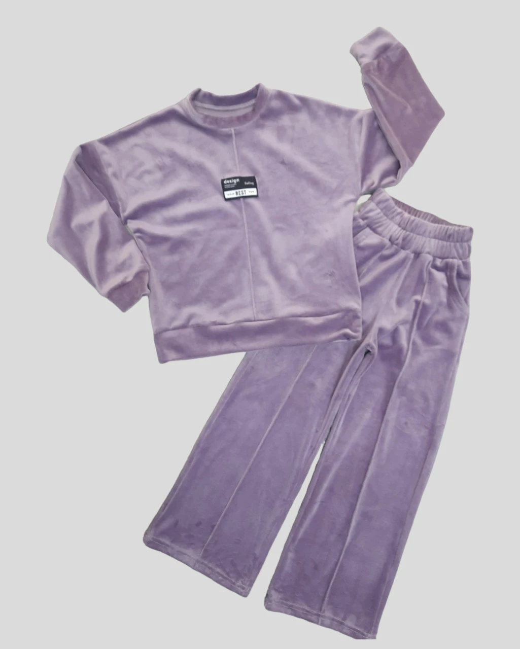 Модный подростковый велюровый костюм для девочки с нашивкой