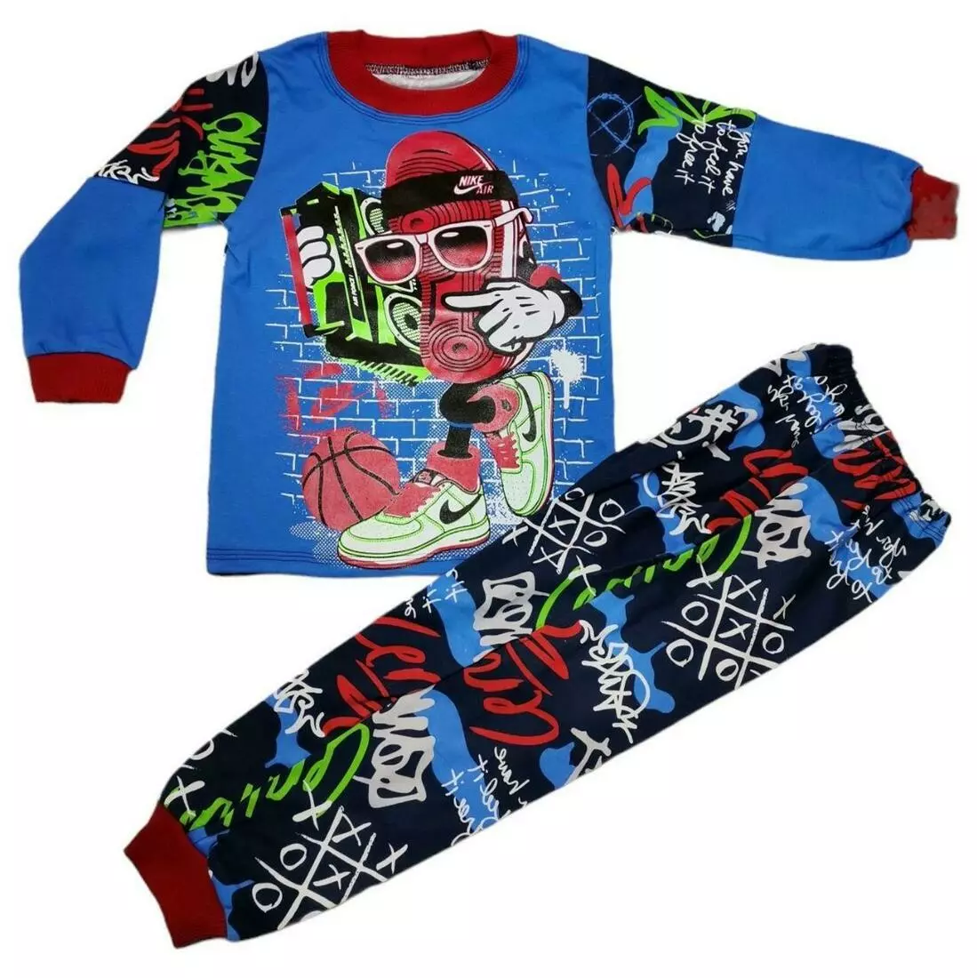 Стильная детская пижама с принтом для мальчика интерлок-пенье