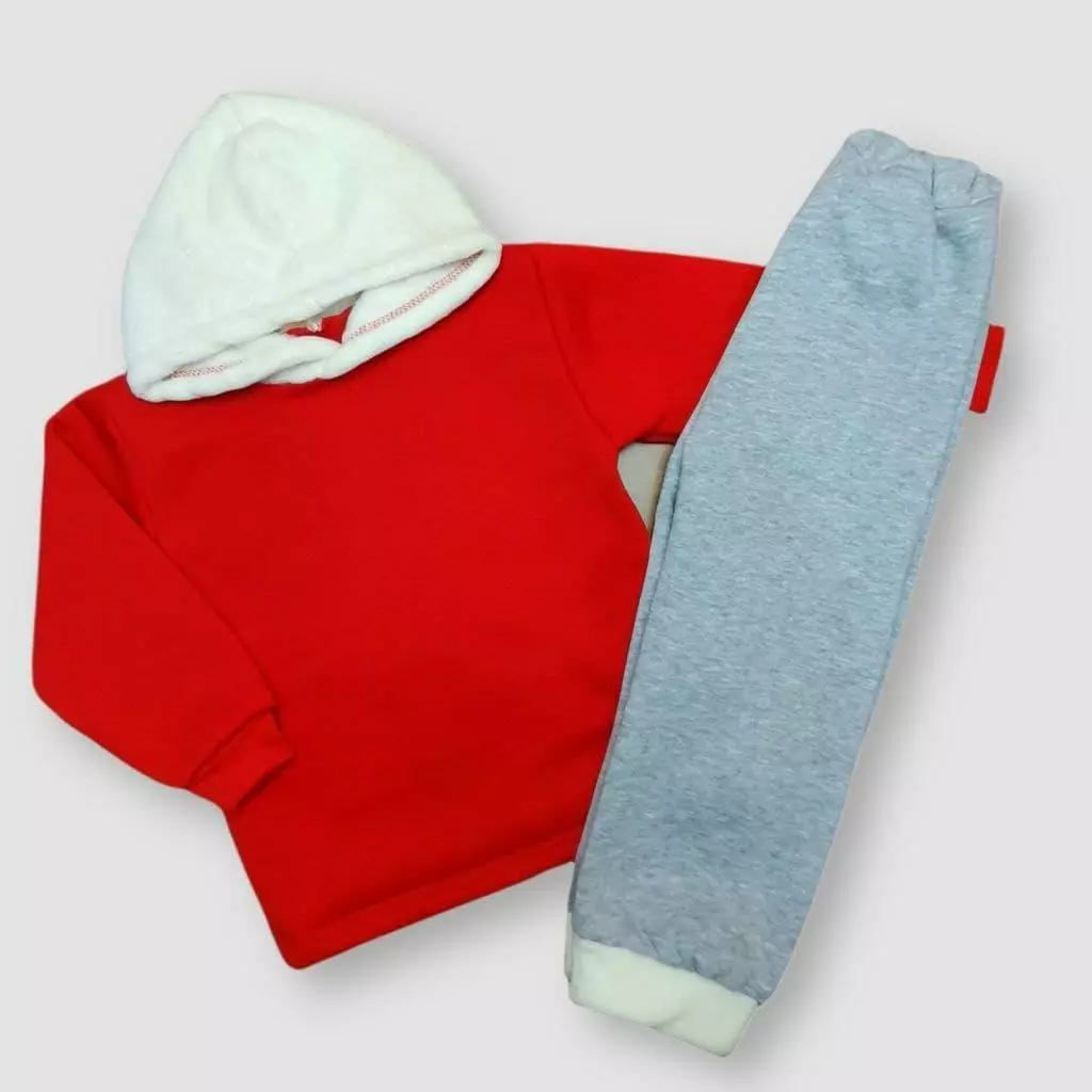 Теплый детский костюм на флисе с капюшоном однотонный